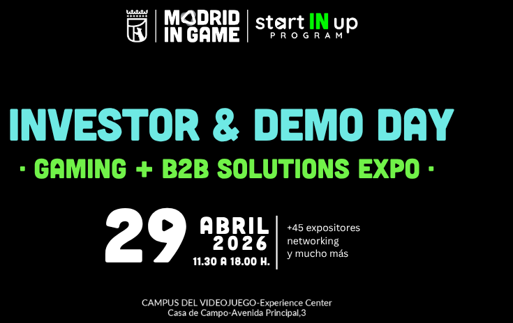 El próximo 29 de abril de 2026 celebraremos la jornada del Investor & Demo Day del Programa de Emprendimiento Start IN Up de Madrid in Game, que recoge las startups más prometedoras en el mundo del gaming, eSports y nuevas tecnologías de esta temporada.